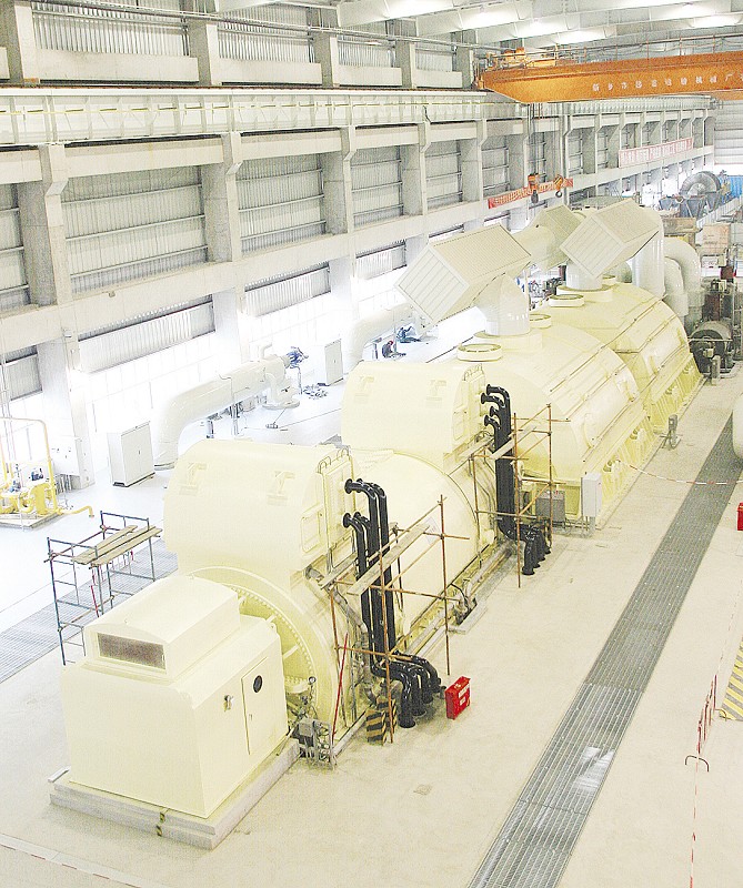 11月21日凌晨3時(shí)16分,國電蚌埠電廠2×600MW機(jī)組1號機(jī)組正式投產(chǎn)前的重要節(jié)點(diǎn)目標(biāo)——— 汽輪機(jī)沖轉(zhuǎn)一次成功,順利達(dá)到3000轉(zhuǎn)/分鐘,各項(xiàng)試驗(yàn)參數(shù)均達(dá)到設(shè)計(jì)規(guī)范要求,調(diào)試運(yùn)行穩(wěn)定。 技術(shù)人員介紹,汽輪機(jī)是發(fā)電機(jī)組的三大主機(jī)之一。通過鍋爐加熱產(chǎn)生的高溫高壓氣體進(jìn)入汽輪機(jī)后,帶動汽輪機(jī)高速運(yùn)轉(zhuǎn),轉(zhuǎn)動的汽輪機(jī)將帶動與之聯(lián)動的發(fā)電機(jī)轉(zhuǎn)軸,最終產(chǎn)生電能。 1號機(jī)組汽輪機(jī)沖轉(zhuǎn)一次成功,標(biāo)志著國電蚌埠電廠向1號機(jī)組年底前高標(biāo)準(zhǔn)達(dá)標(biāo)投產(chǎn)目標(biāo)又邁出了堅(jiān)實(shí)一步。目前,電廠正在抓緊設(shè)備消缺和各項(xiàng)試驗(yàn)工作,為下一步實(shí)施整套啟動,進(jìn)而開展“168小時(shí)試運(yùn)”做好充分準(zhǔn)備。