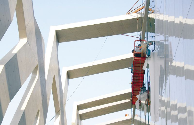日前,施工人員在加緊安裝龍湖體育館外墻的幻彩鋁塑板。龍湖體育館的外觀造型采用透空大型群雕主題墻,既抽象又具體,既內斂又張揚,通過構件所產生的陰影投映在外墻面上,形成一個光影變化豐富的三維空間,動感十足,給人以無限遐想。體育館建成后將成為我市標志性建筑,提升了城市品位