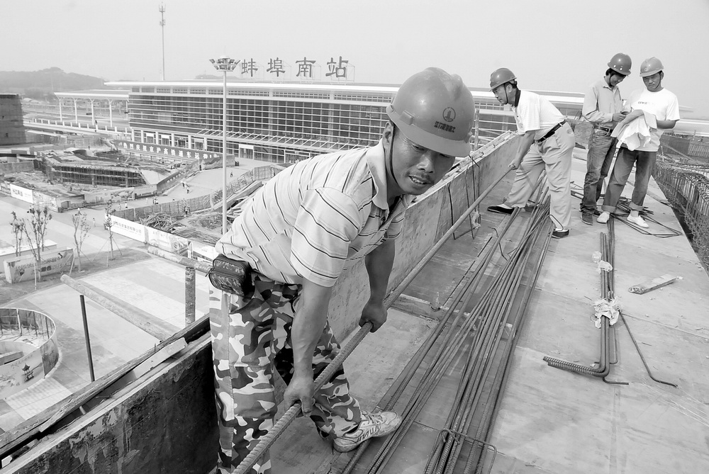 7月13日,施工人員在進(jìn)行蚌埠南站配套服務(wù)樓屋頂鋼筋綁扎施工。據(jù)了解,高鐵蚌埠南站配套服務(wù)樓主體施工進(jìn)入尾聲,16日將開(kāi)始進(jìn)行混凝土澆灌封頂施工。