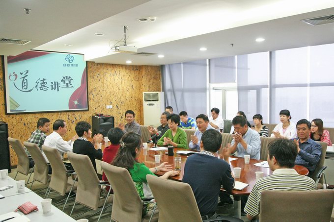 在祖國65華誕即將到來之際,9月29日下午,公司在十五樓會議室舉辦道德講堂活動。公司總部人員,金融、城市運(yùn)營、置信物業(yè)黨支部代表參加了活動。本期道德講堂以“同心共筑中國夢”為主題,通過“唱歌曲、誦經(jīng)典、學(xué)模范、學(xué)禮儀、發(fā)善心、送吉祥”六個環(huán)節(jié),著力宣傳社會主義核心價值觀,重點開展愛國主義教育,突出弘揚(yáng)中華民族道德力量。