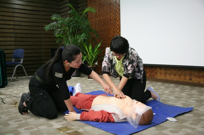 培訓(xùn)中,授課老師介紹了紅十字會(huì)的起源及主要職責(zé),結(jié)合案例詳細(xì)講解了創(chuàng)傷救護(hù)、常見(jiàn)急癥、意外傷害等現(xiàn)場(chǎng)救護(hù)知識(shí),重點(diǎn)演示了徒手心肺復(fù)蘇急救技術(shù)的動(dòng)作要領(lǐng),并邀請(qǐng)學(xué)員上臺(tái)親身嘗試。培訓(xùn)過(guò)程講解生動(dòng),內(nèi)容貼近工作生活實(shí)際,現(xiàn)場(chǎng)秩序井然。